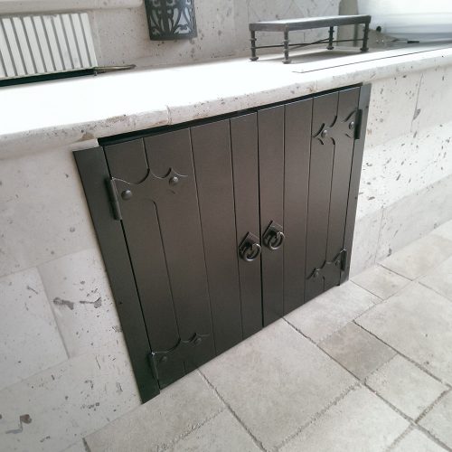 At Victory Metal Works we offer single doors, double doors, doors with sidelights, double doors with transoms, and can even design custom doors for wine rooms. Victory Metal Works customizes every wrought iron door to the customer’s needs, and ensures technical aspects of the design are exact.